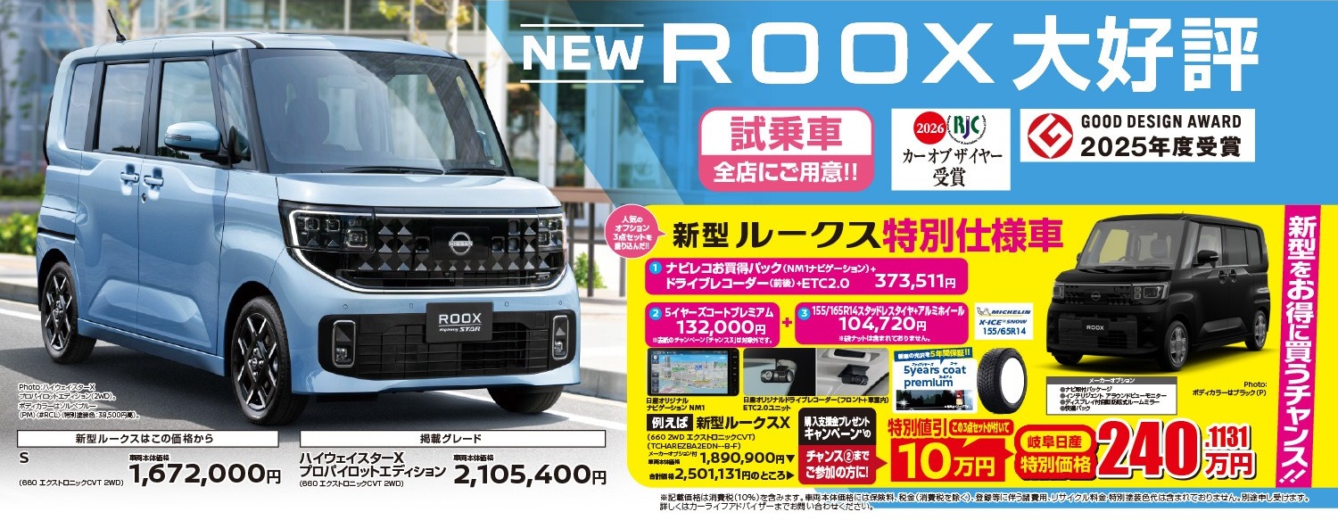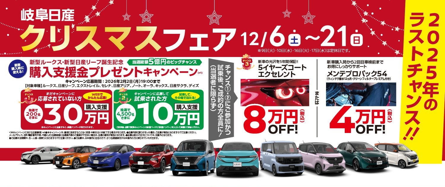 • 新型ルークス・新型リーフ誕生記念!購入支援金プレゼントキャンペーン