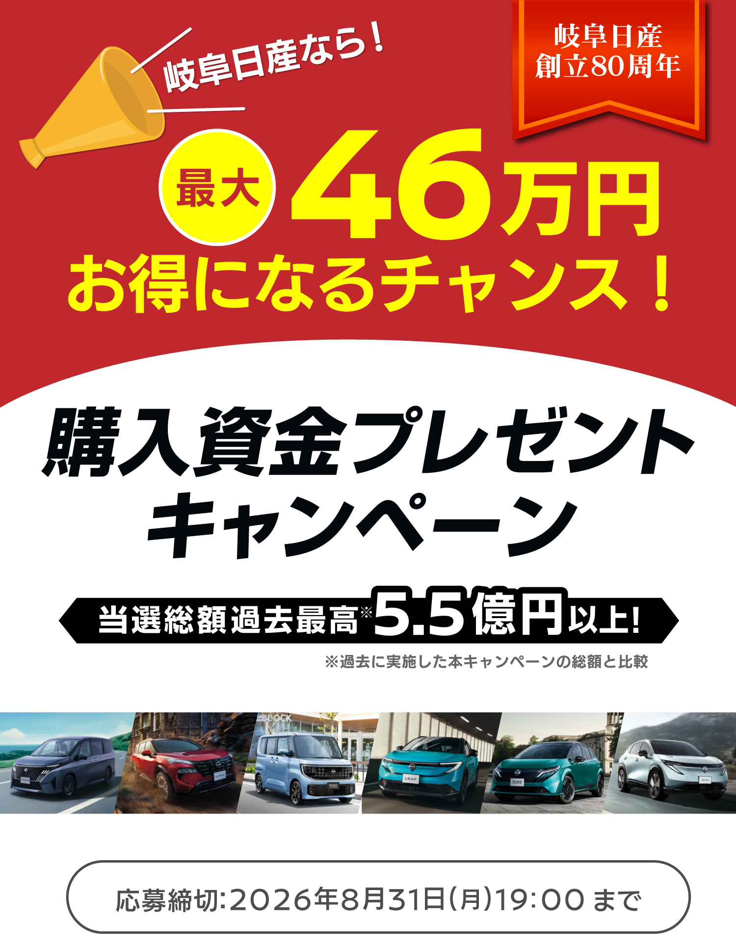<話題の新型車も対象に! 購入資金プレゼントキャンペーン>